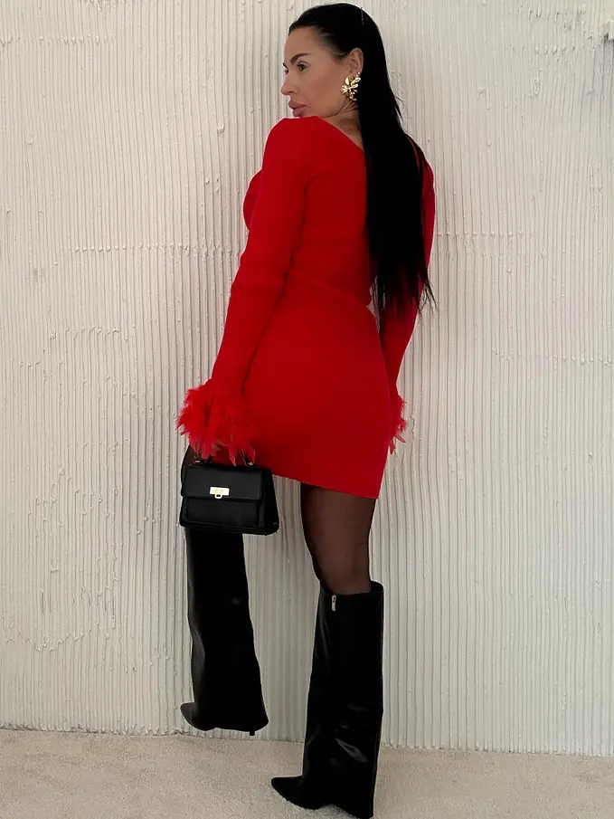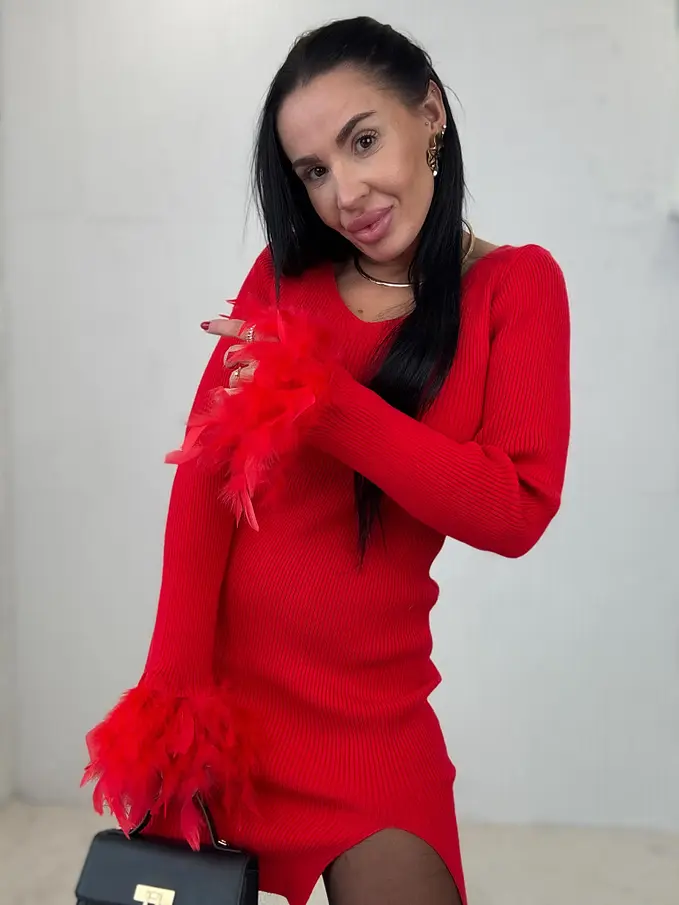 Vrúbkované šaty s pierkami na rukávoch VERA+