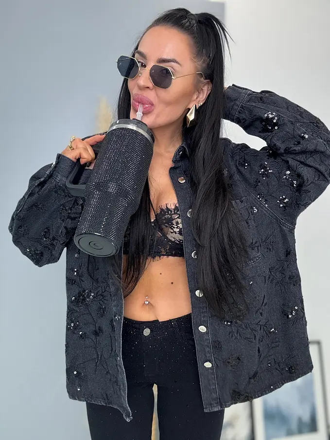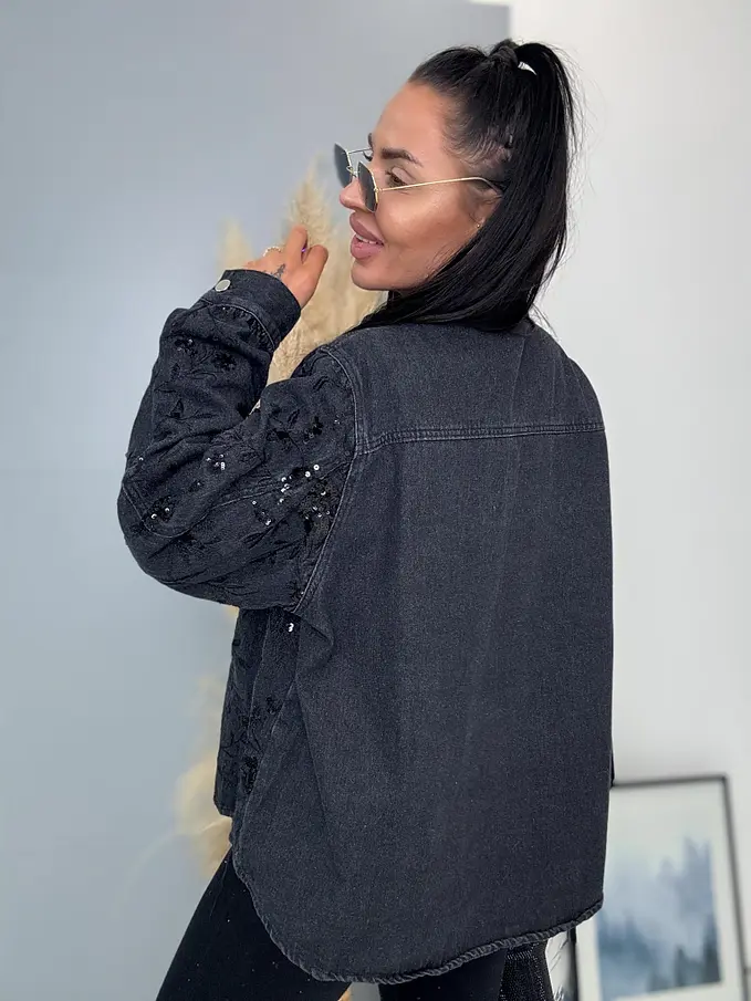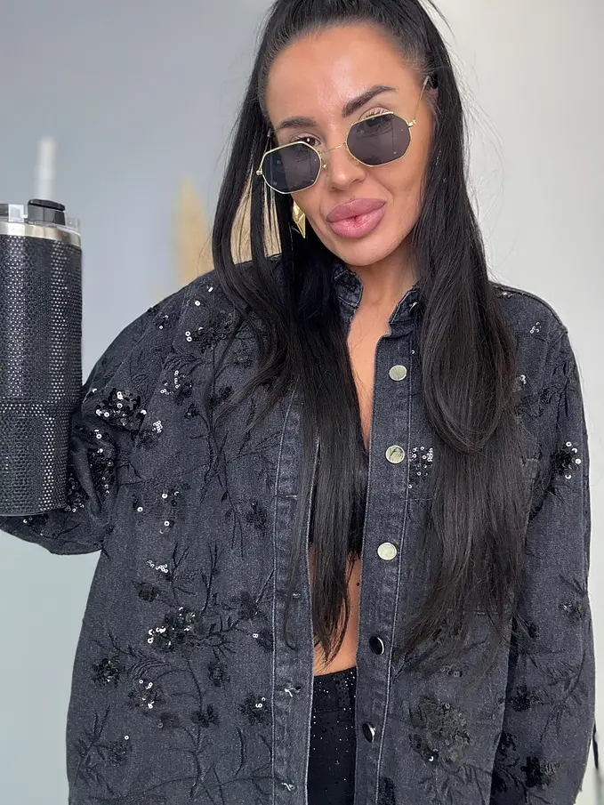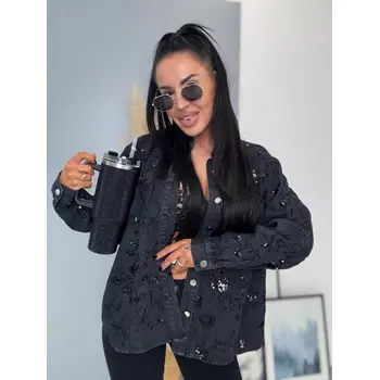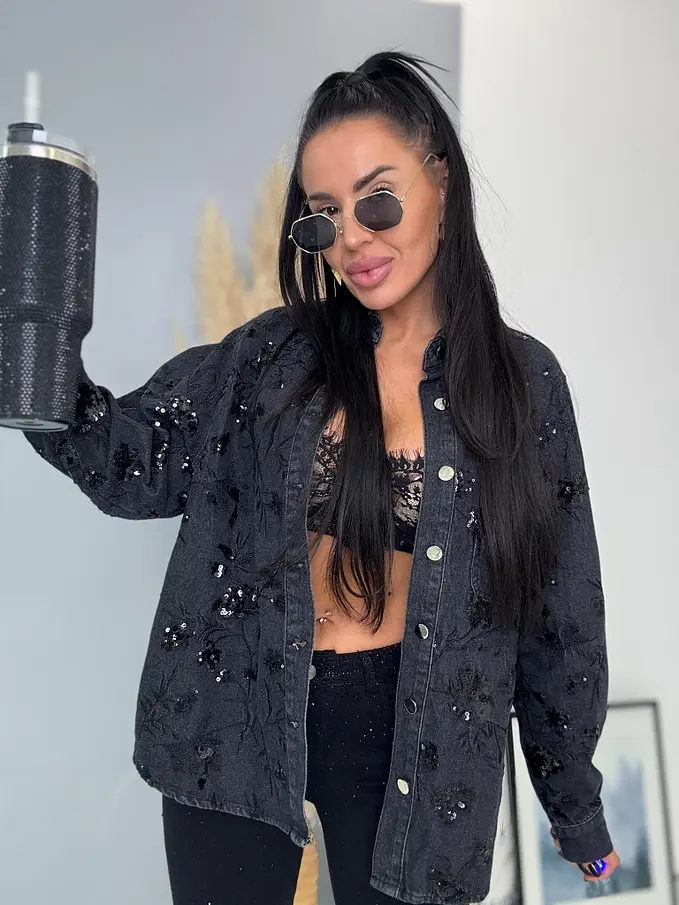 Vyšívaná rifľová košeľa zdobená flitrami AMANI