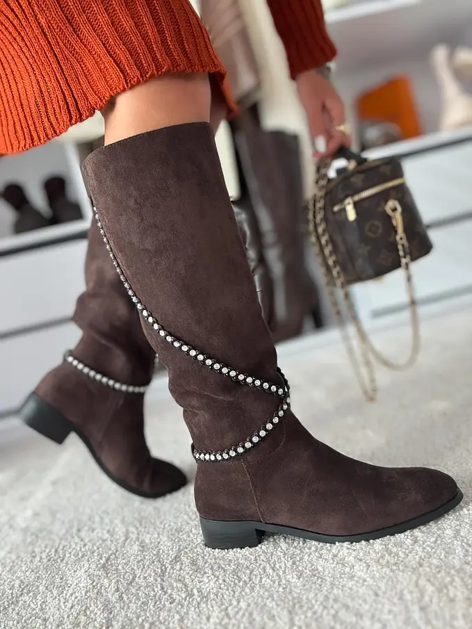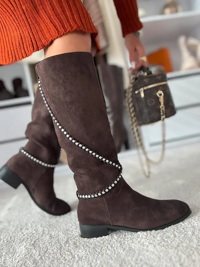 Štýlová aj v sychravom počasí? Čižmy perfektne doplnia napríklad slim džínsy a vestu z kožušinky. Čižmy sú mierne zateplené. Ozdoba má stribornú farbu. Na vnútornej strane so zipsom.