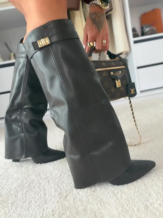 Štýlová aj v sychravom počasí? Čižmy perfektne doplnia napríklad slim džínsy a vestu z kožušinky. Čižmy nie sú zateplené. Ozdoba má zlatú farbu.