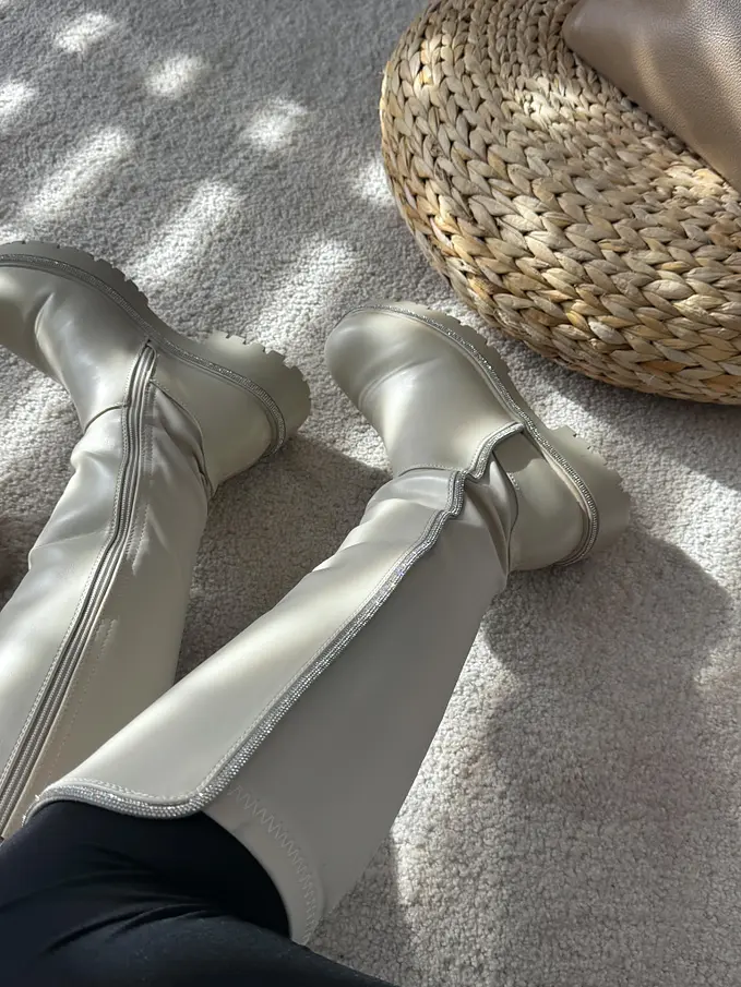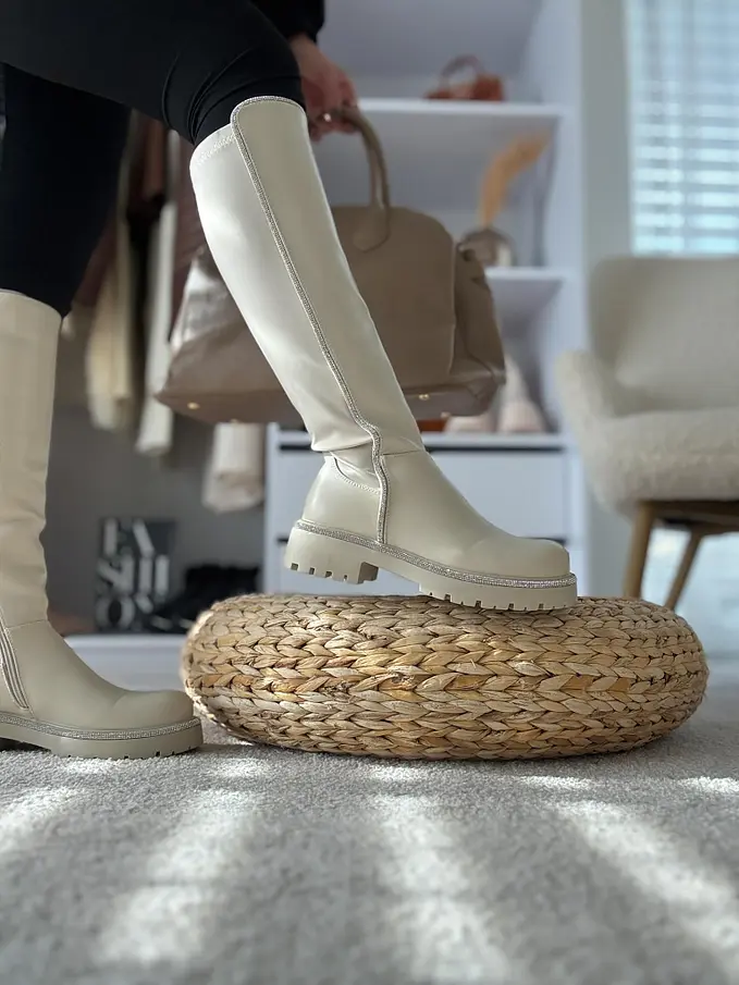 Vysoké čižmy so striebornou ozdobou ROYA-