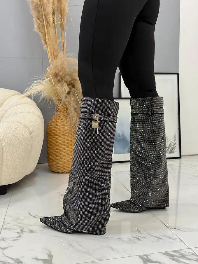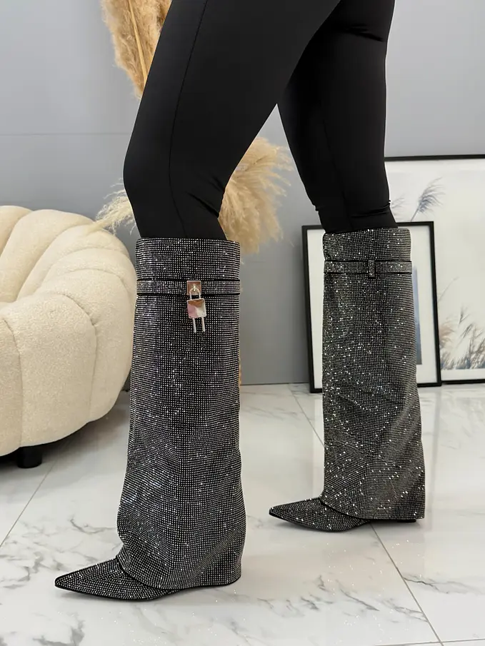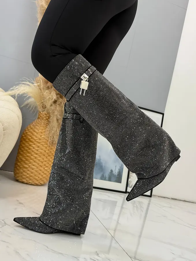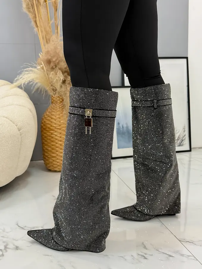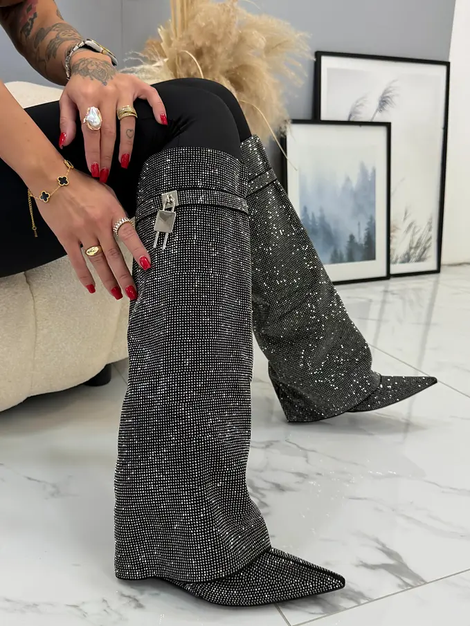 Vysoké čižmy zdobené kamienkami ZOFIA-