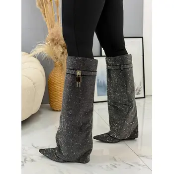 Štýlová aj v sychravom počasí? Čižmy perfektne doplnia napríklad slim džínsy a vestu z kožušinky. Čižmy sú mierne zateplené. Ozdoba a kamienky majú striebornú farbu.