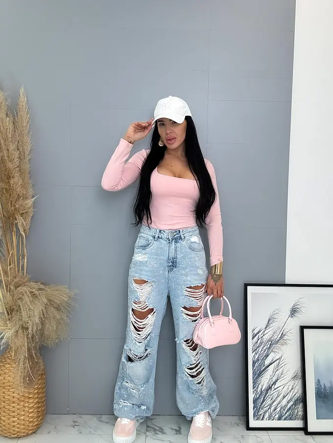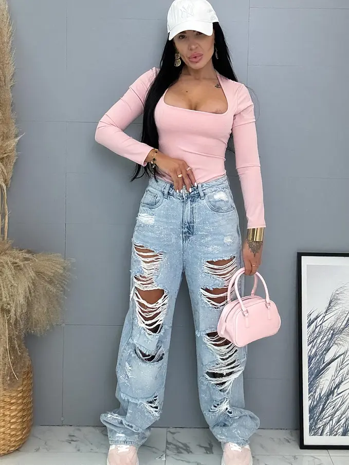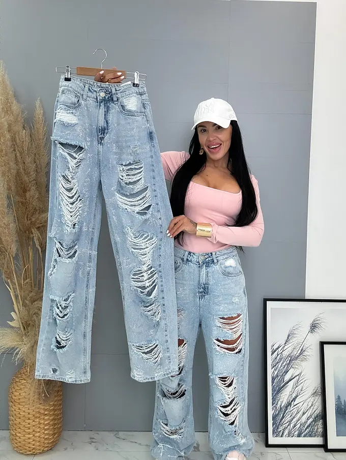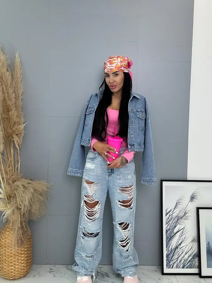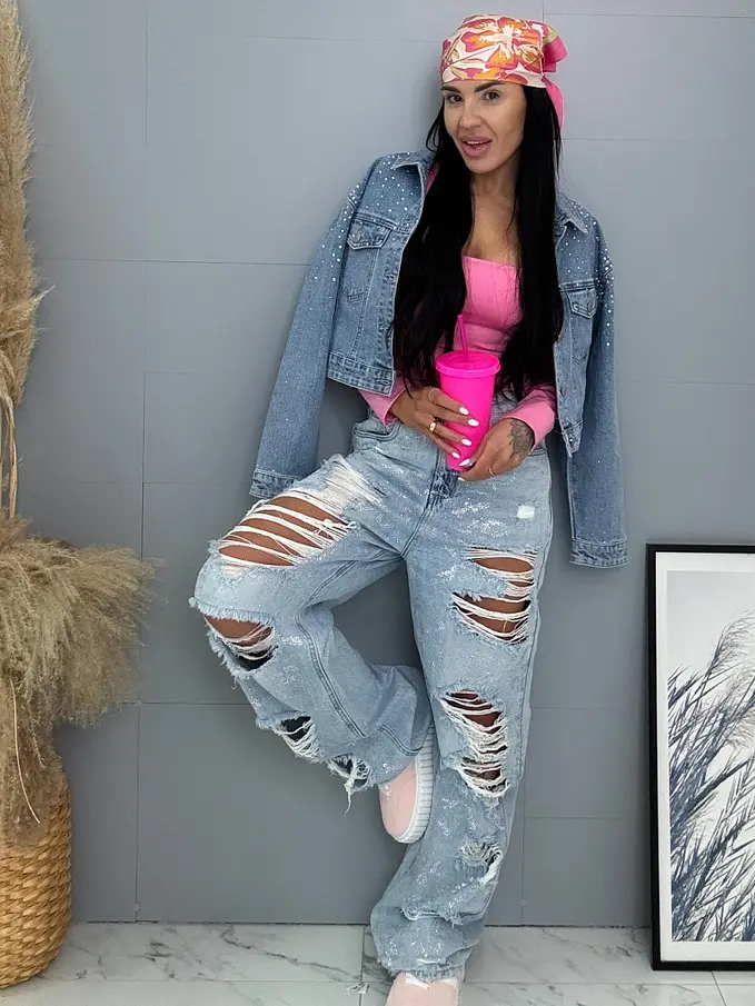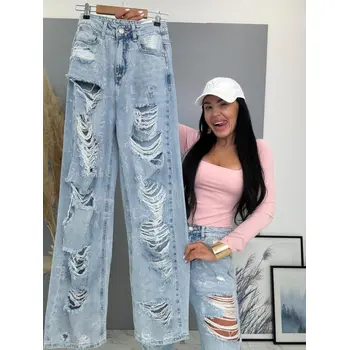 Vysokopásové roztrhané wide leg rifle s kamienkami