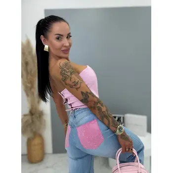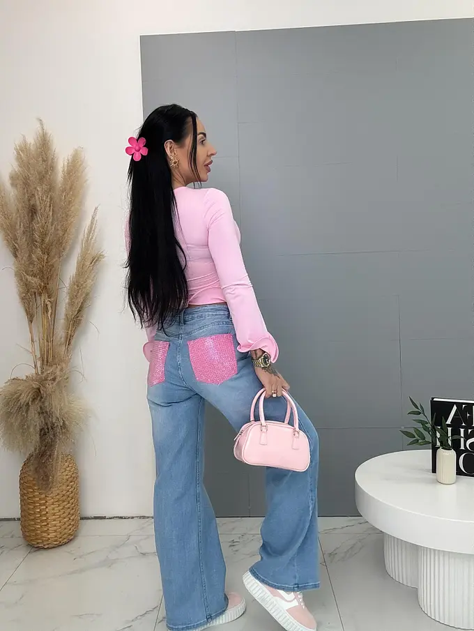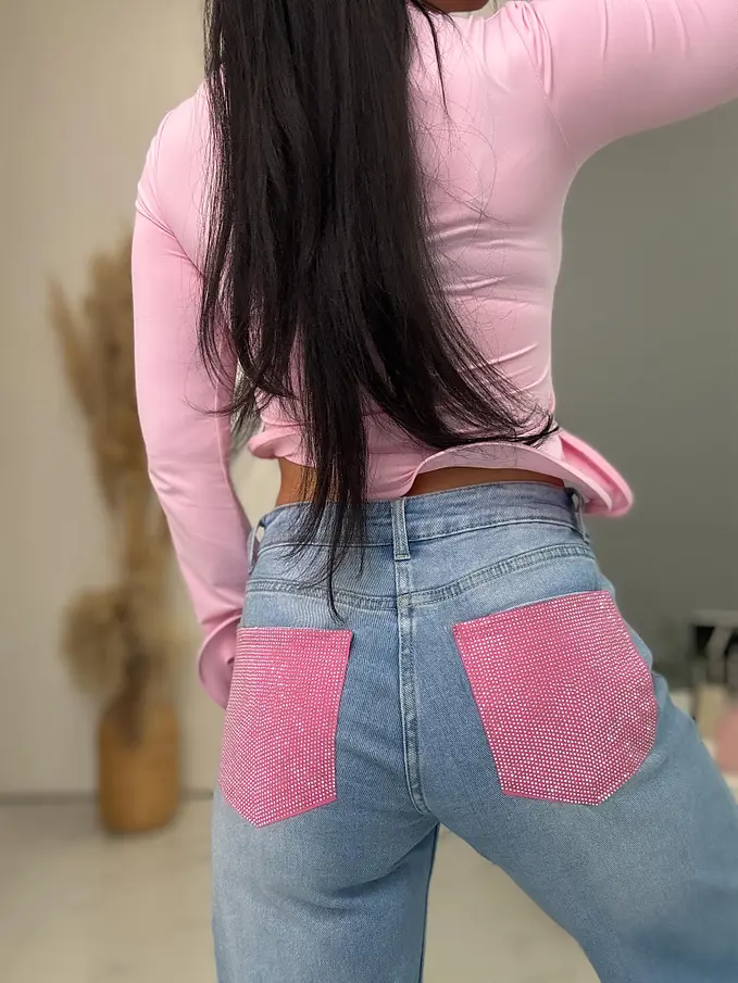Vysokopásové wide leg rifle zdobené kamienkami na vreckách ELLE