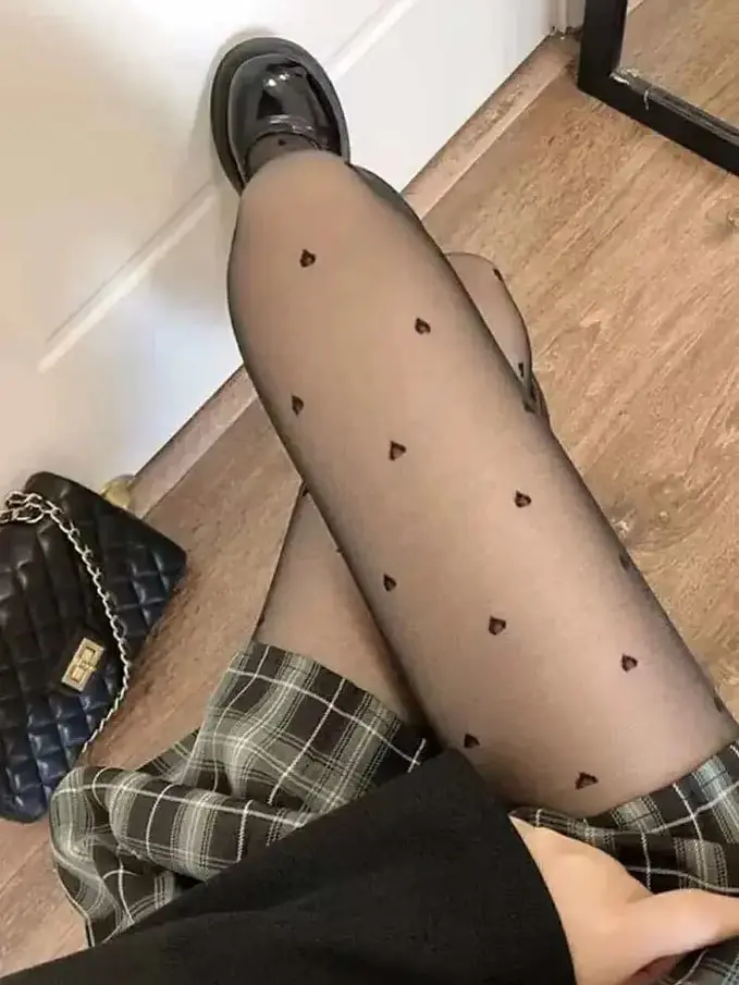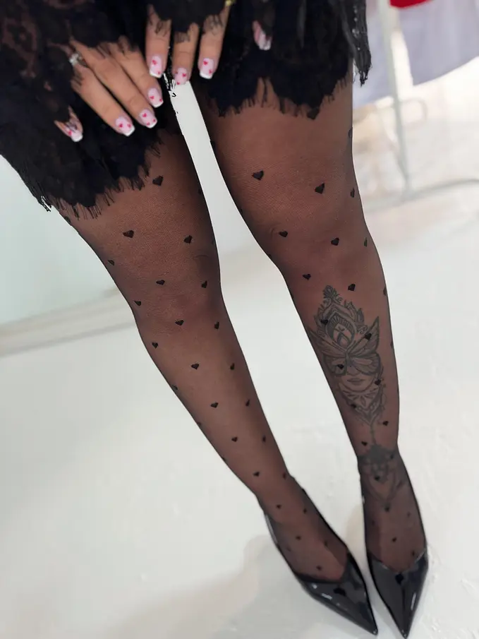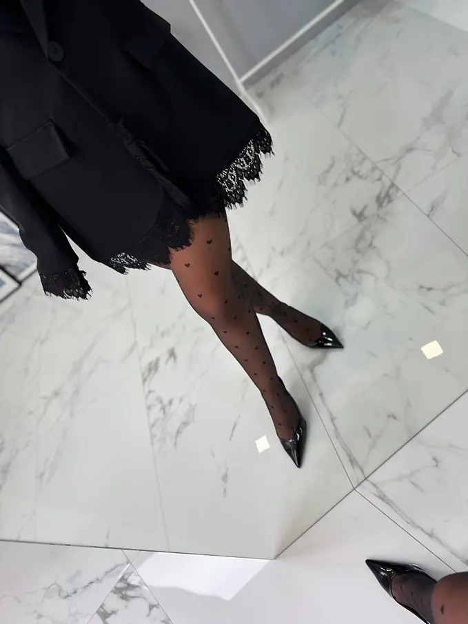 Vzorované čierne pančuchové nohavice-