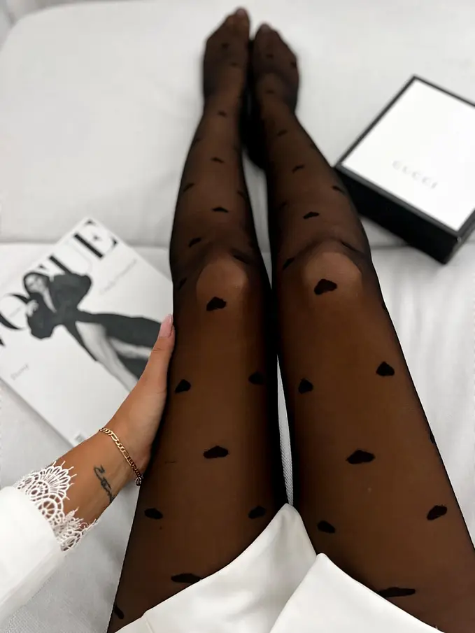 Vzorované čierne pančuchové nohavice-
