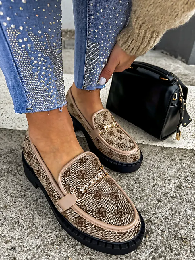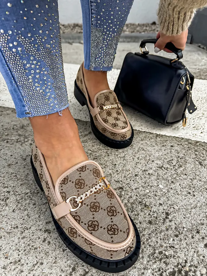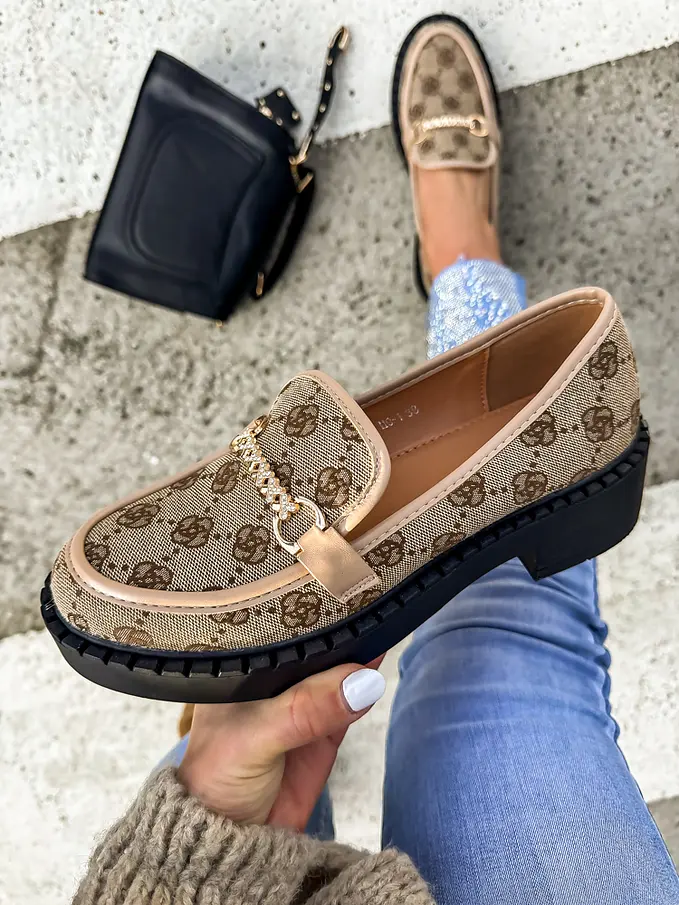 Vzorované mokasíny so zlatou ozdobou AVAH-