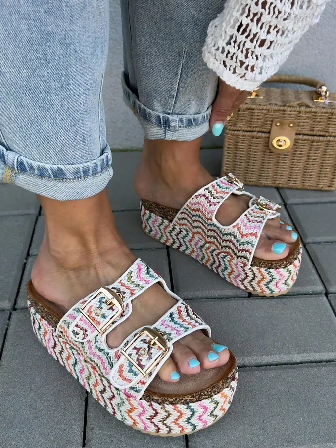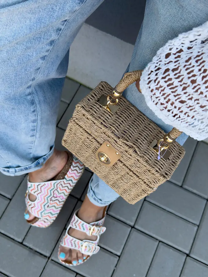 Pohodlné dámske šľapky. Ozdoba má zlatú farbu.