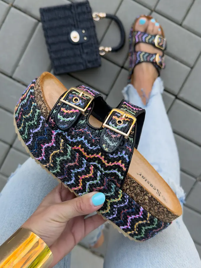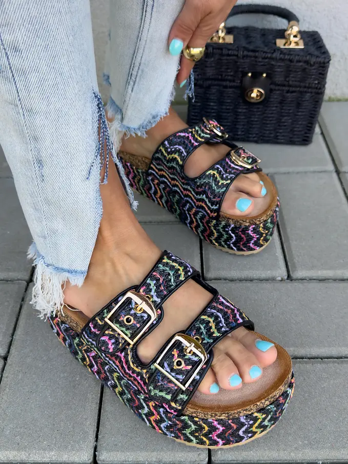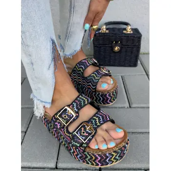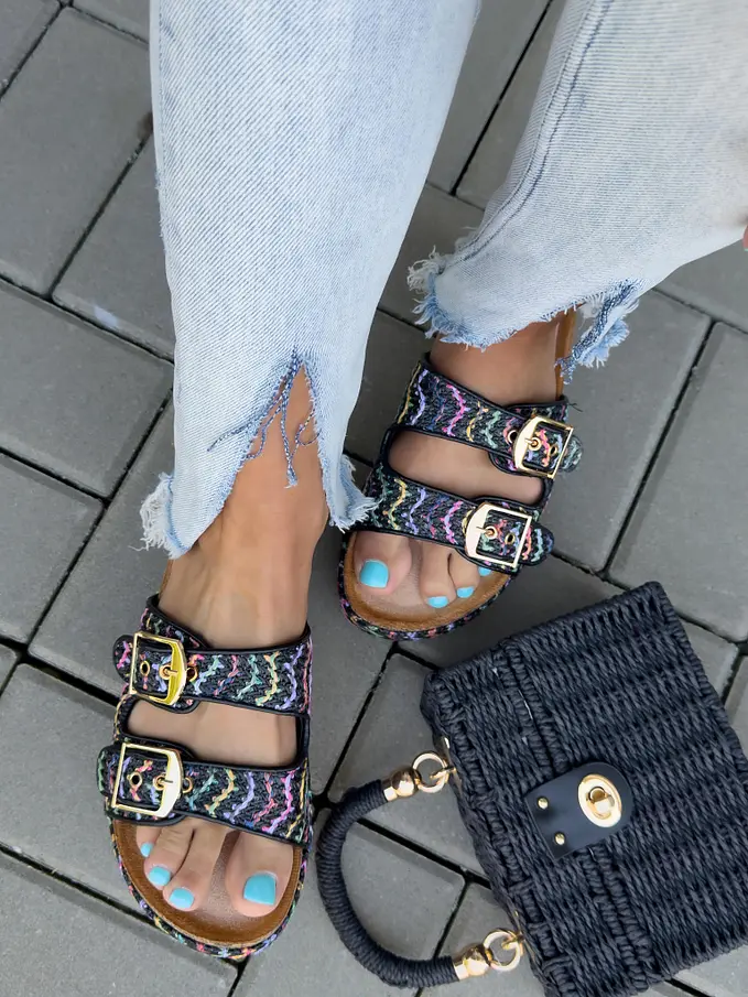 Pohodlné dámske šľapky. Ozdoba má zlatú farbu.