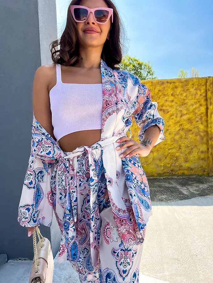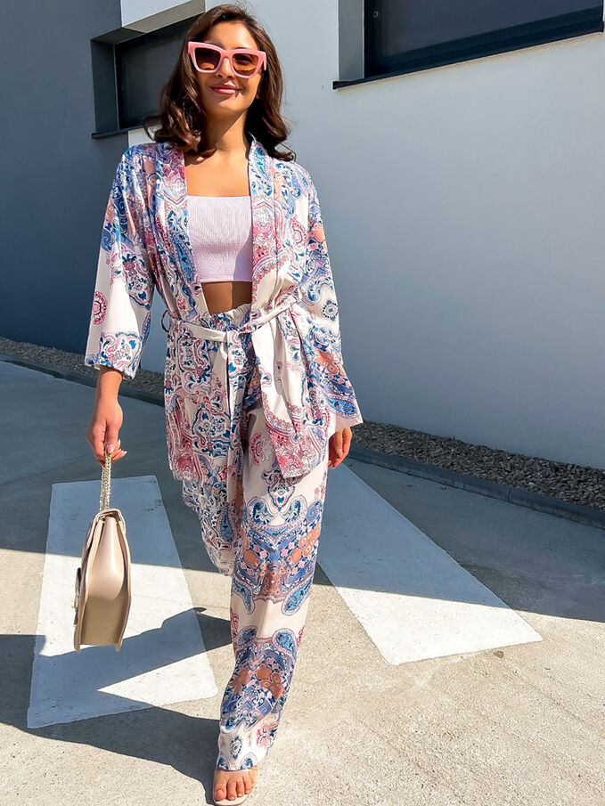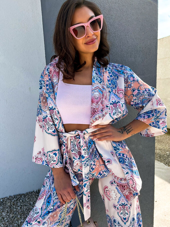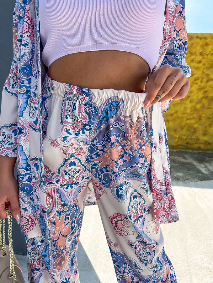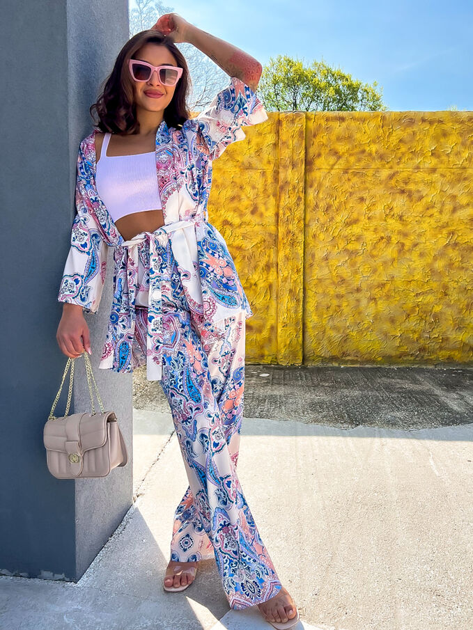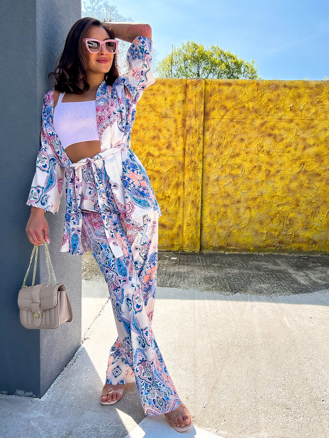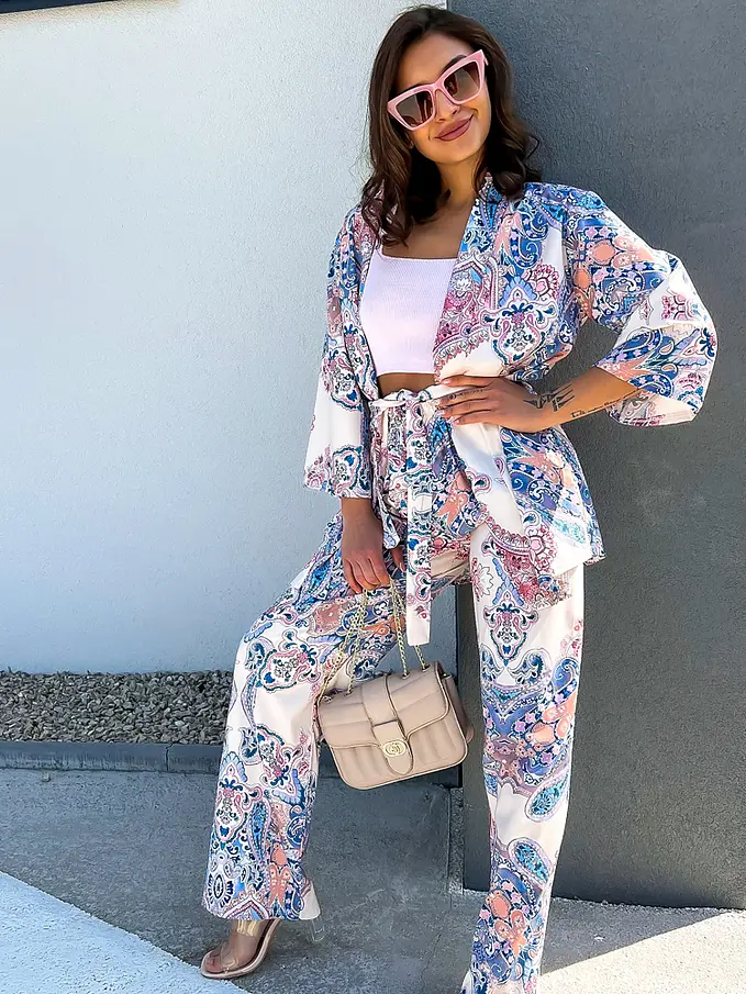 Elegantný a pohodlný komplet, ktorý sa pozostáva z blúzky a wide leg nohavíc.