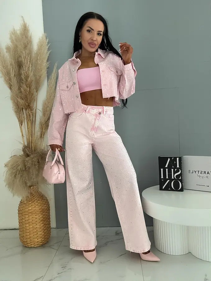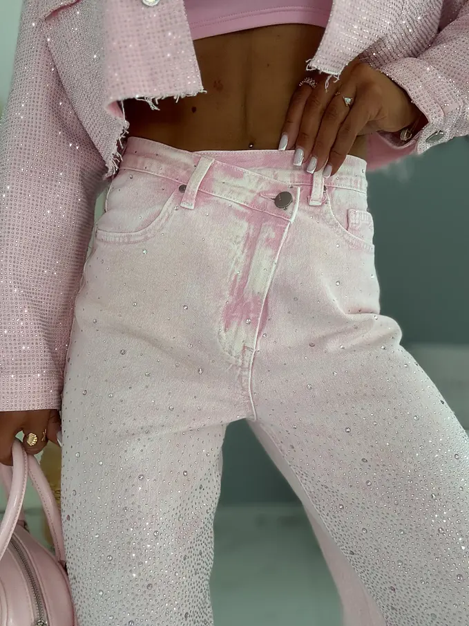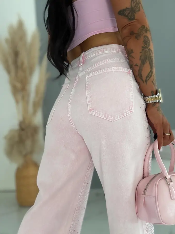 Wide leg džínsy s kamienkovou výzdobou SHINE
