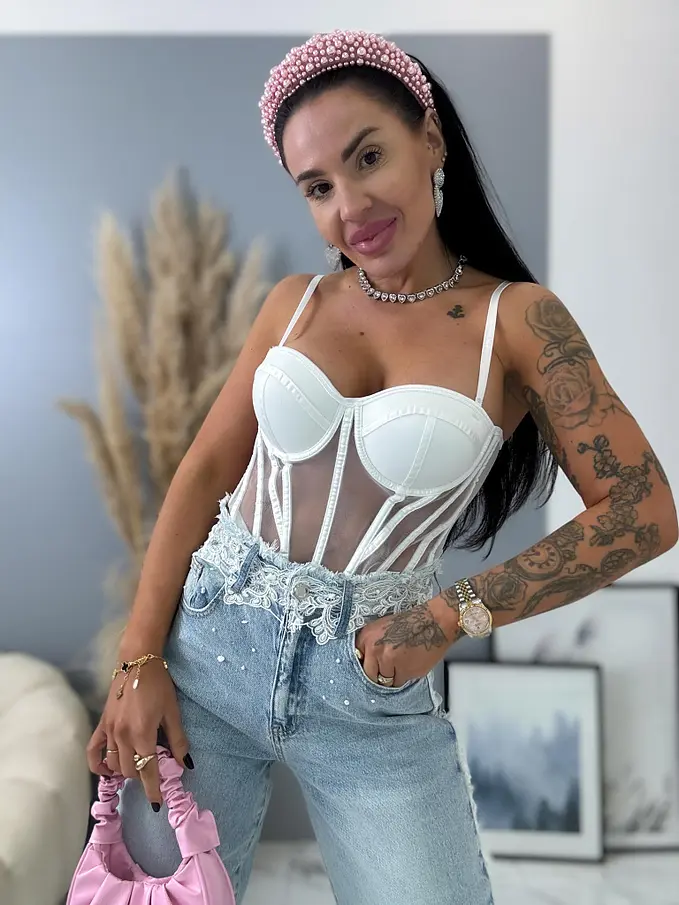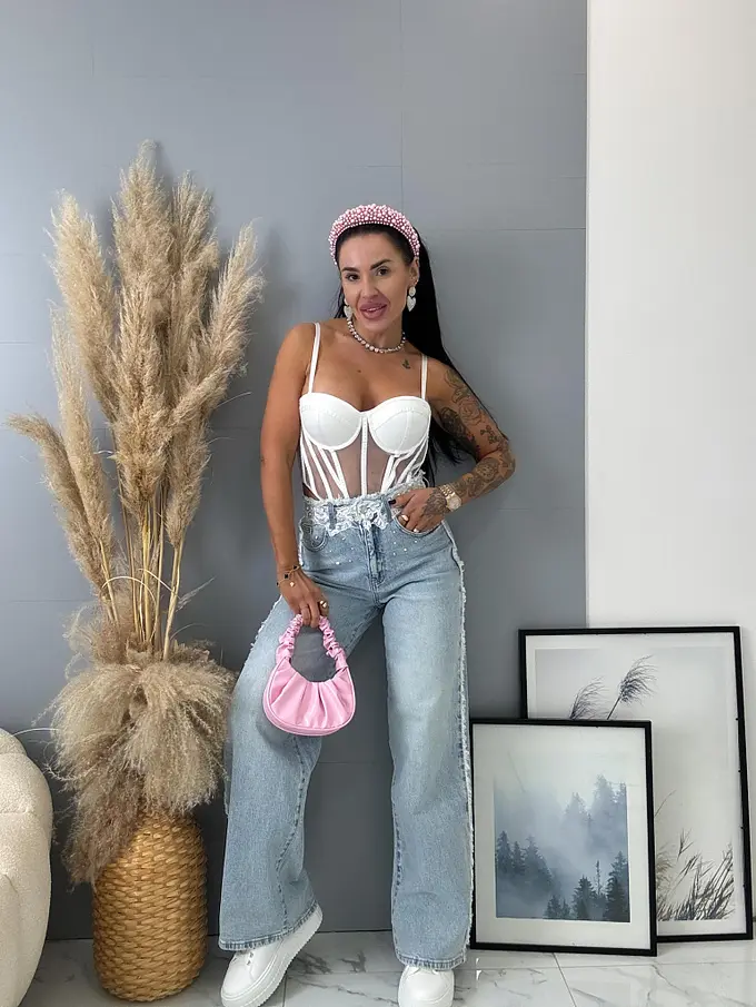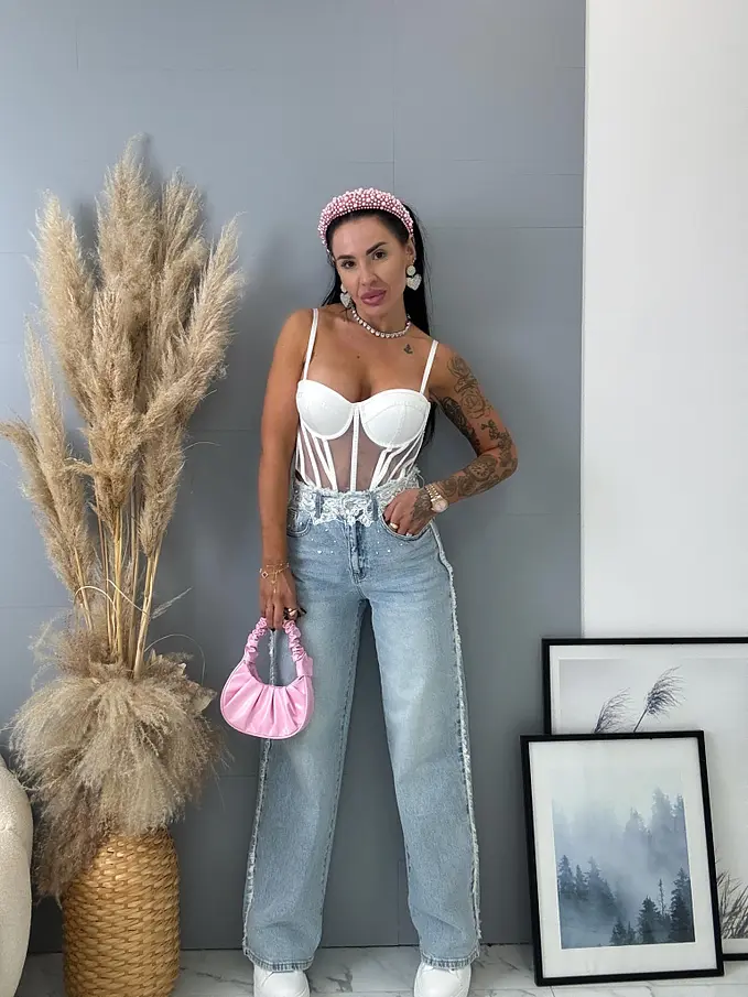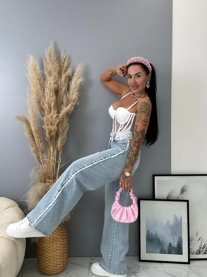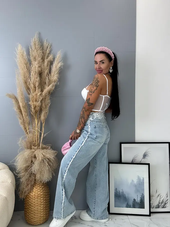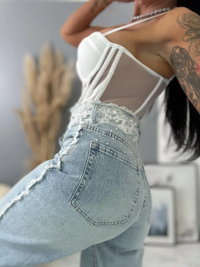 Premium kvalita. Nohavice majú vysoký pás. Materiál je príjemný, elastický. S ozdobnými čipkami v páse. Gombík je striborný.