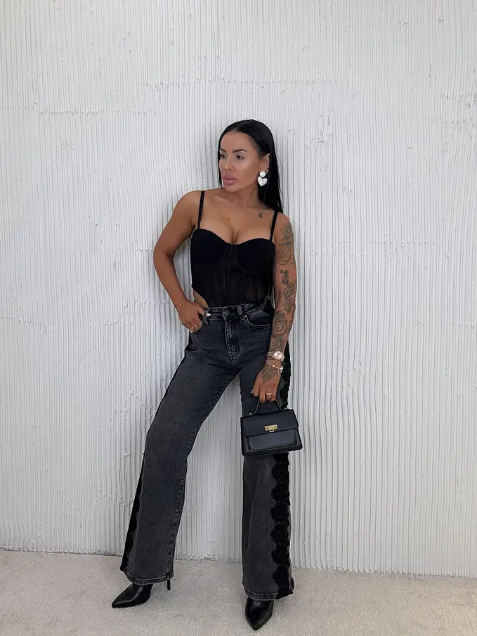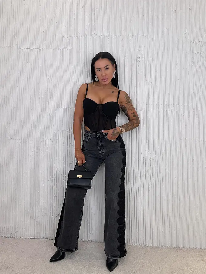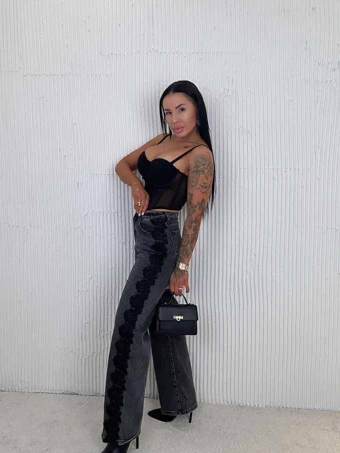 Wide-leg rifle s čipkovým detailom MONA