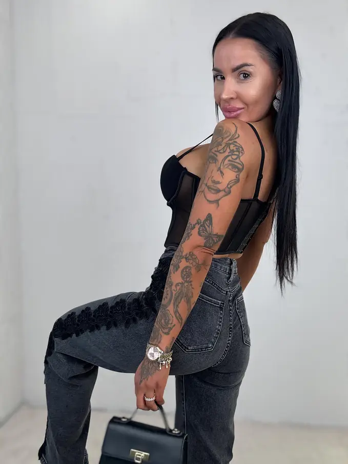 Premium kvalita. Nohavice majú vysoký pás. Materiál je príjemný, elastický. S ozdobnými čipkami. Gombík je striborný.
