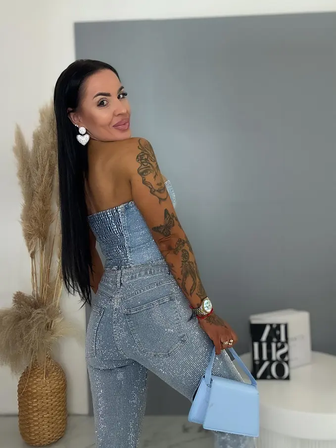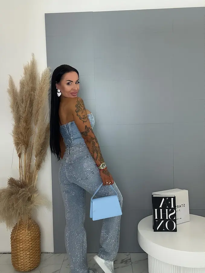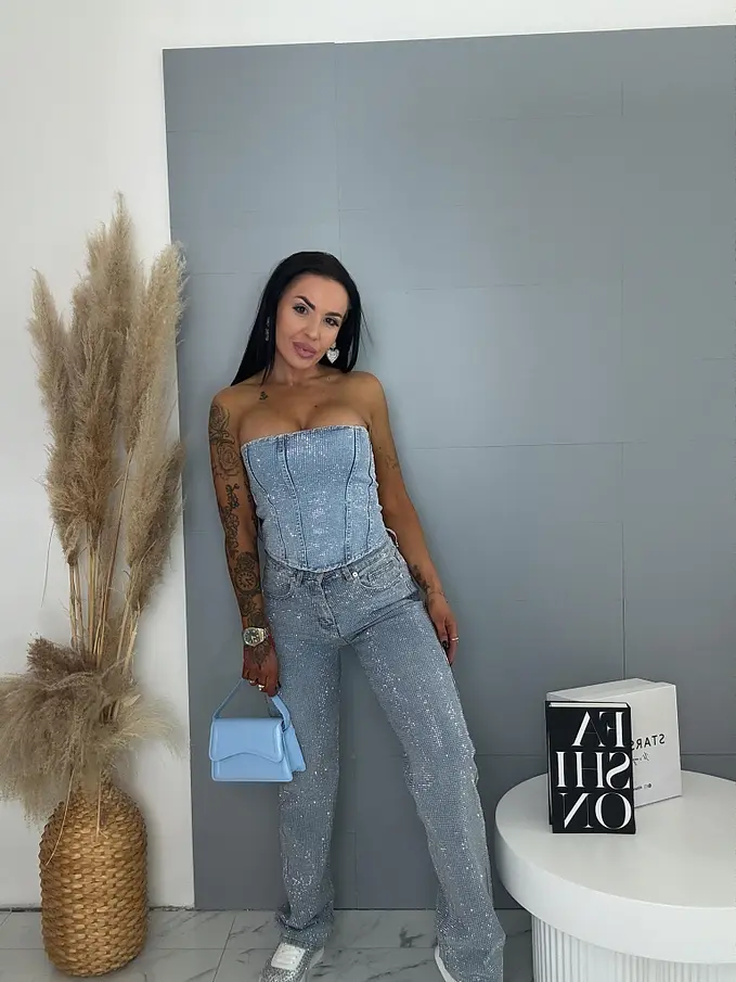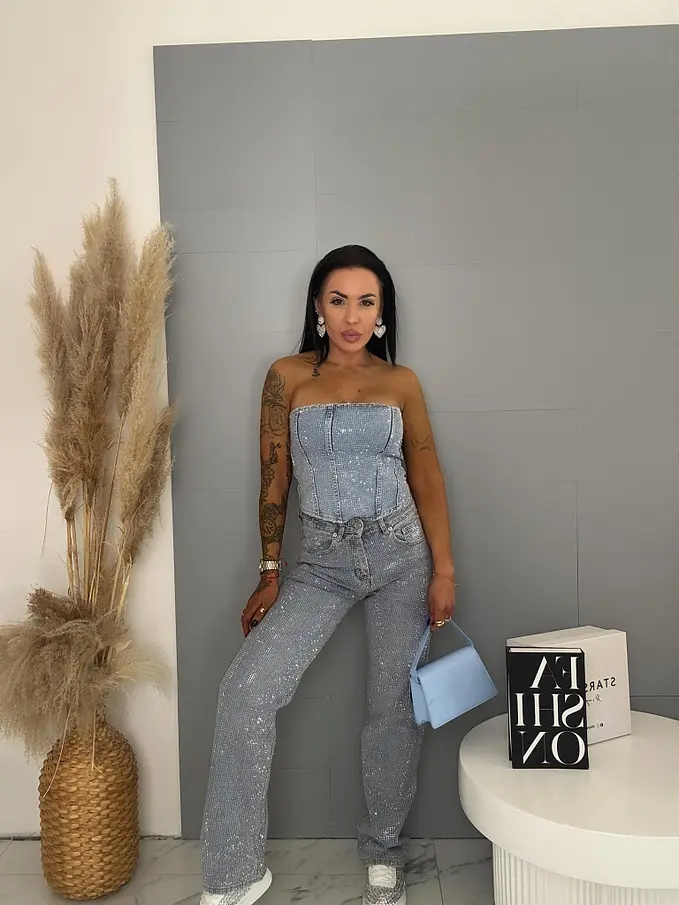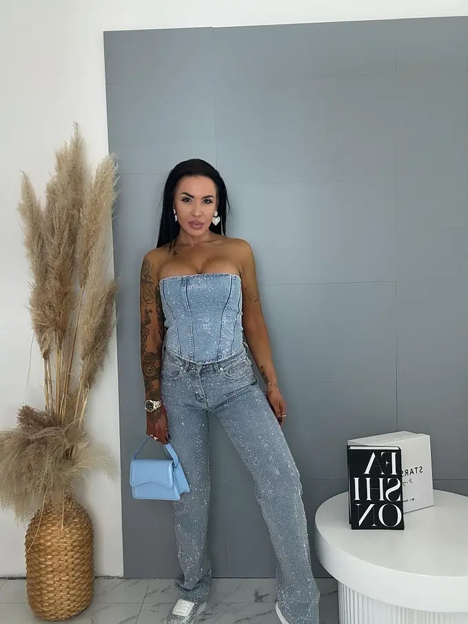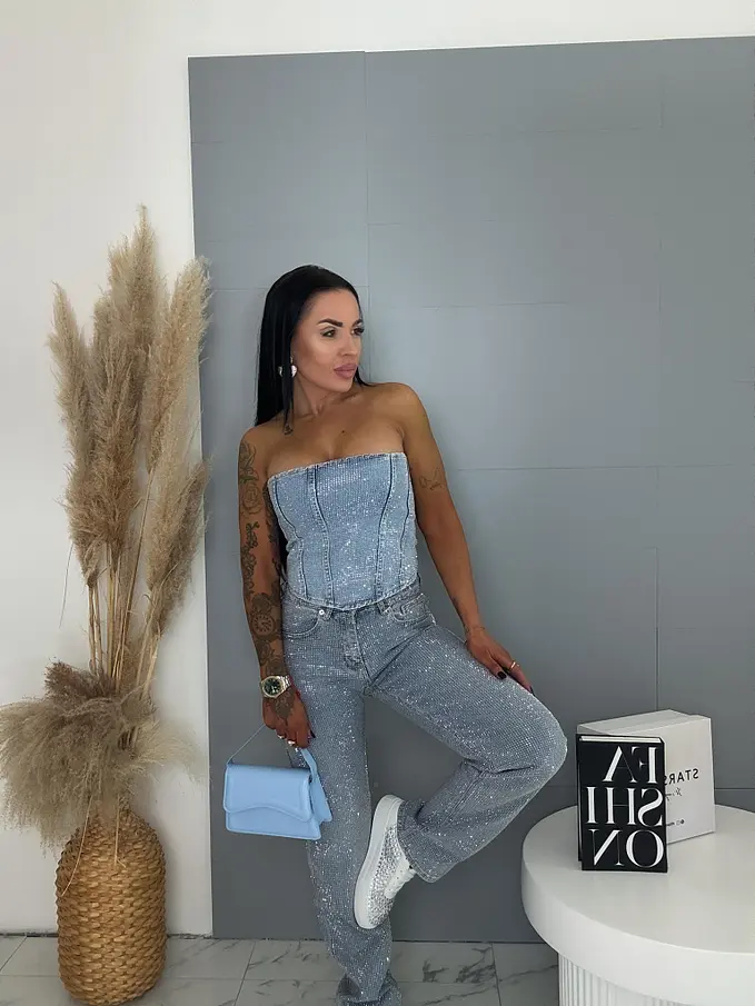 Wide leg rifle s kamienkami BLUE BRILLANCE