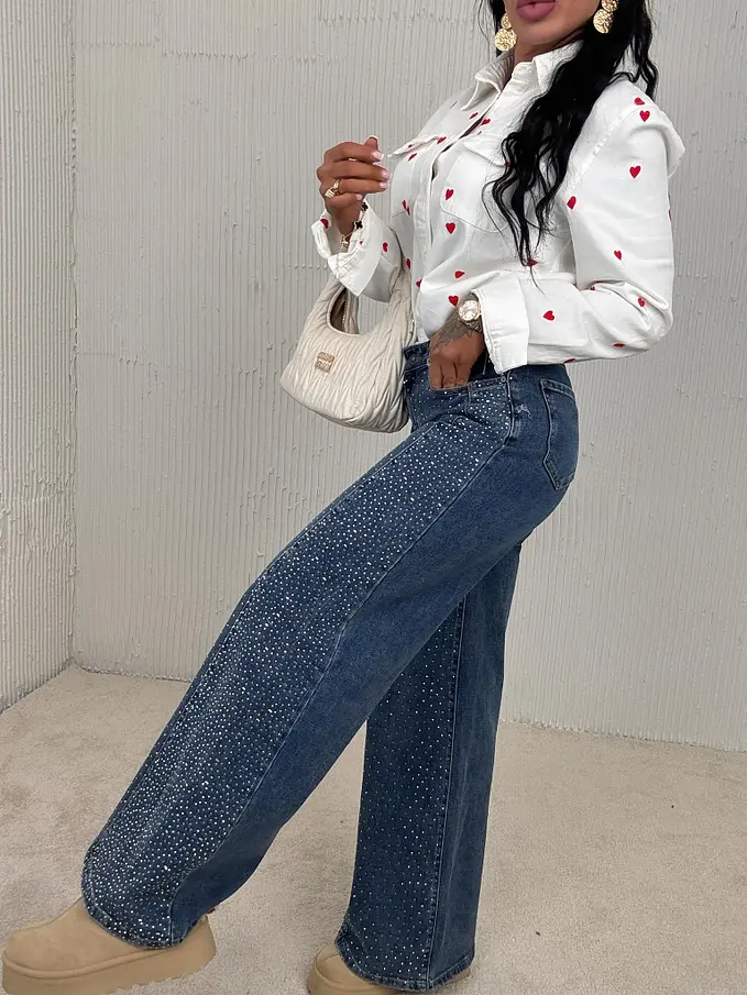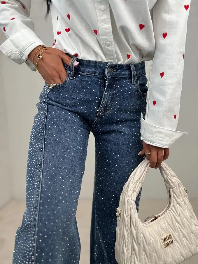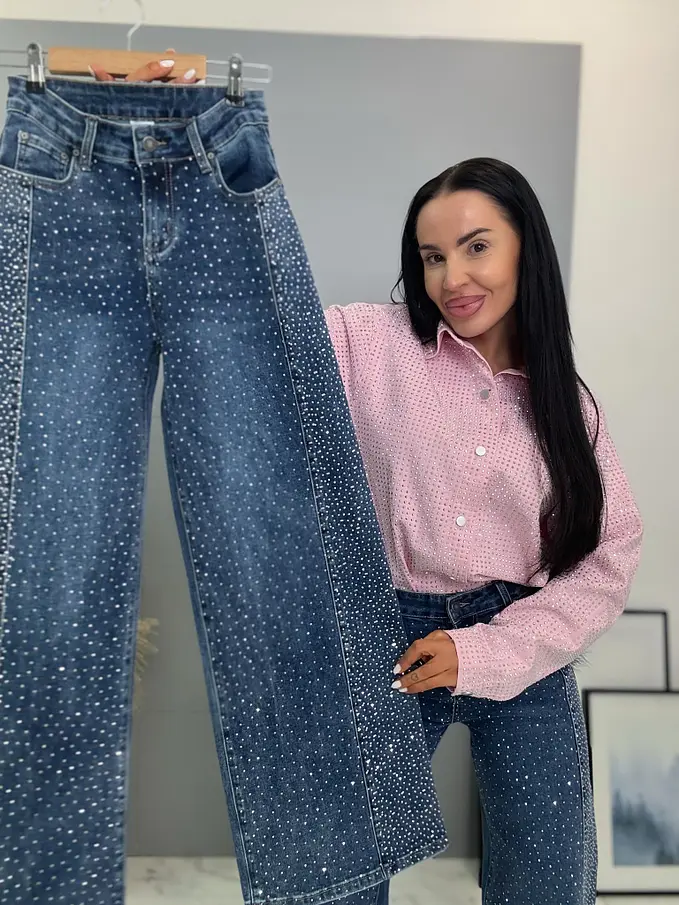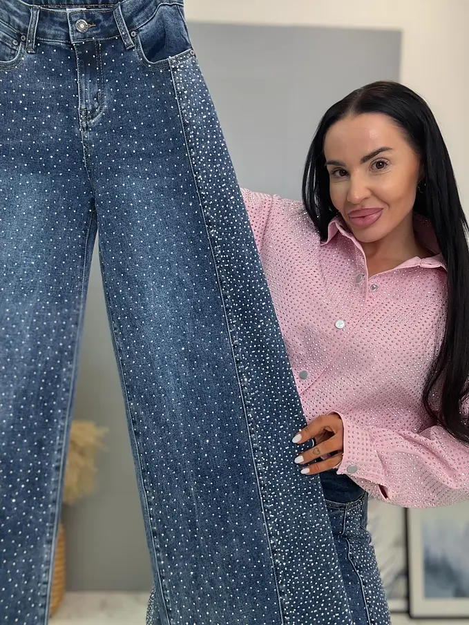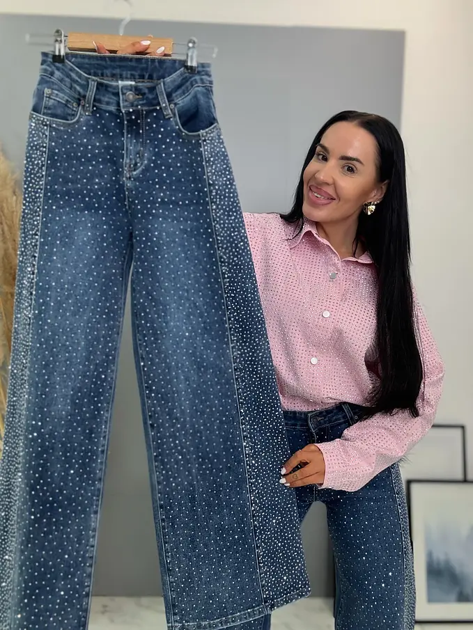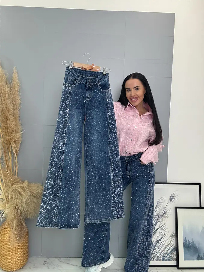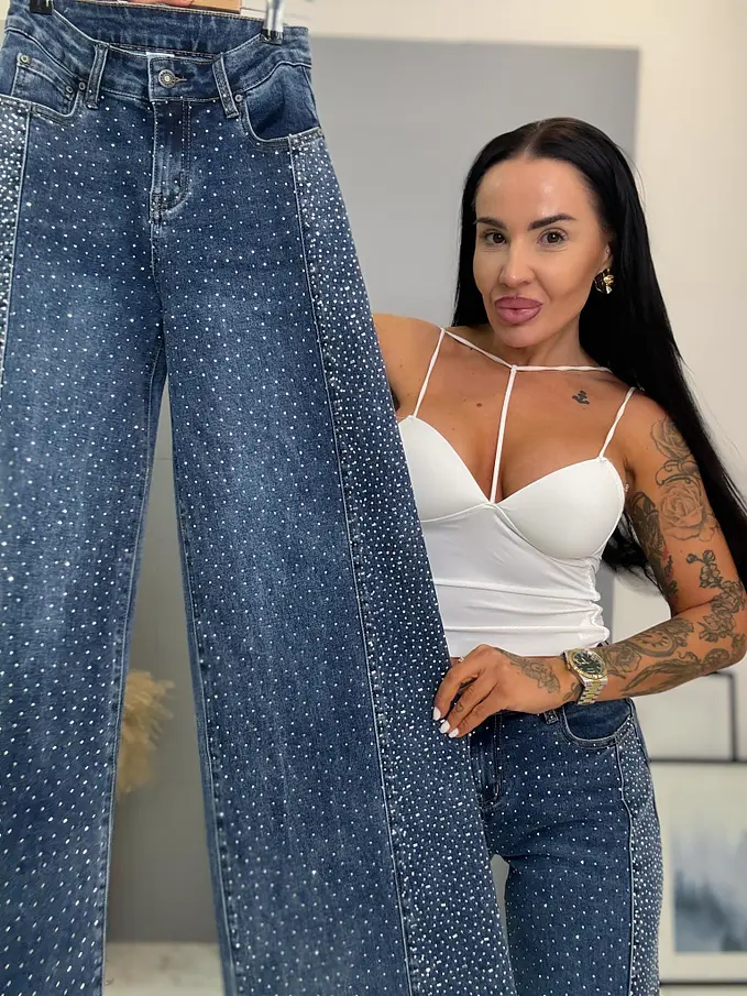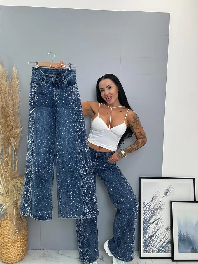 Premium kvalita. Nohavice majú vysoký pás. Materiál je príjemný, a mierne elastický. Jemné kamienky po celej ploche.