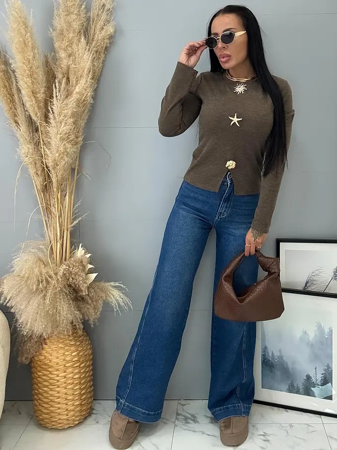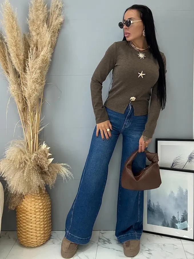 Modelka čiernovláska meria 164 cm a váži 57 kg. Nosí veľkosť XS.