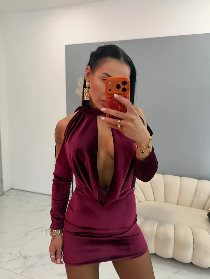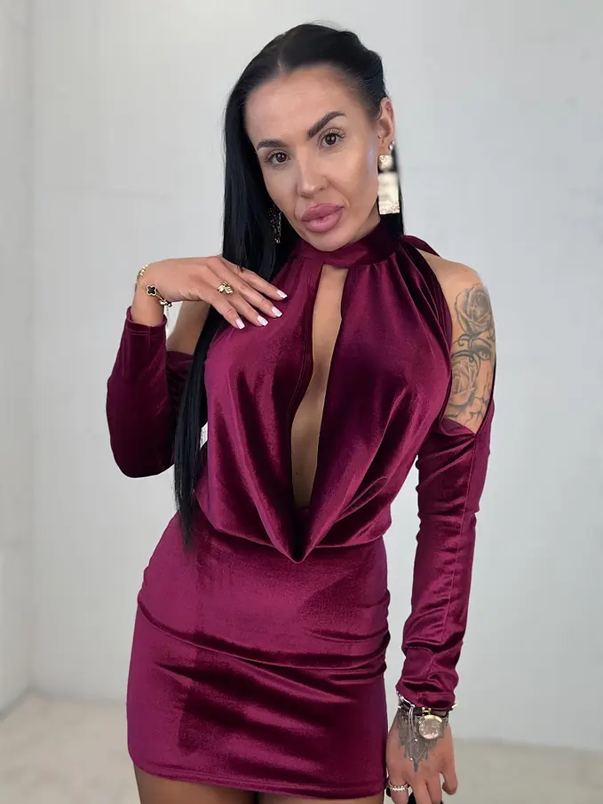 Elegantné zamatové šaty. Materiál je elastický. Vzadu zapínanie na gombíky.